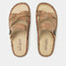 Casual meets regal. The Victoriah is the perfect slide sandal to glamorize any summer outfit. Sumptuous patterns and complementary metallic hardware create an intricate look. An adjustable strap and a crisscross design over the vamp are paired with our slimmer Mini outsole, designed to mimic a natural rocking motion for improved pressure distribution across the bottom of the foot. The patented footbed is ergonomically designed to conform the natural contour of the foot, working to relieve legs, hip and back from long standing hours. Featured in a Relic colorway on a printed leather upper.